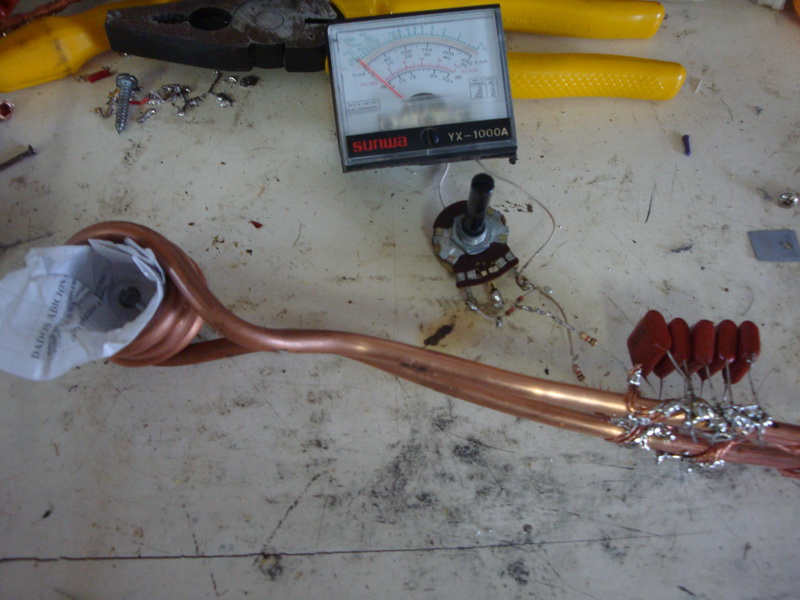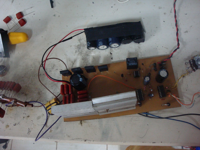 Estou adicionando mais cerca de 30 capacitores (470nF x 400V), e baixarei ainda mais a frequência de ressonância.
