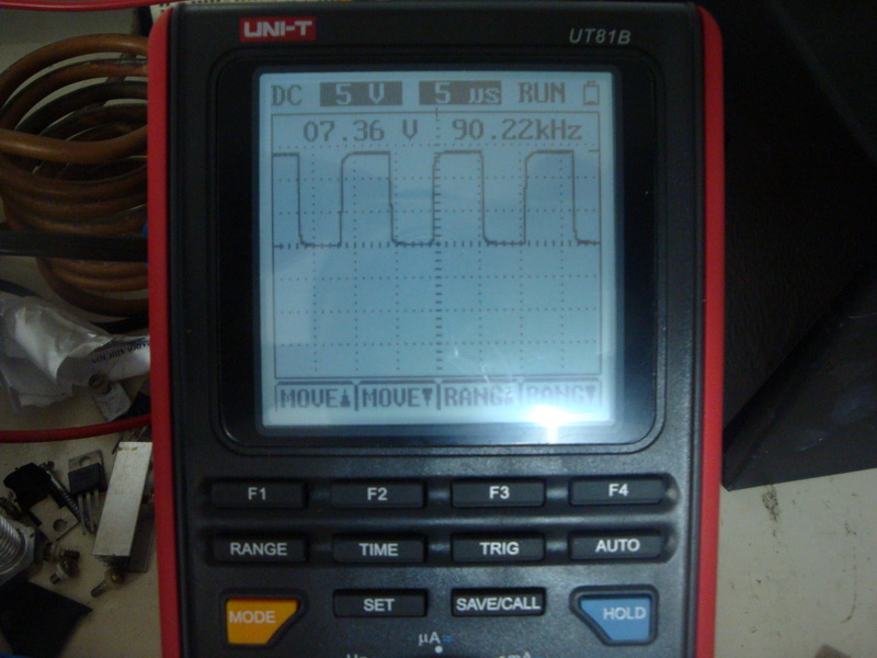 Aumentei o banco de capacitores, agora, com 20 capacitores (470nF x 400V), estou trabalhando na frequência de 68,77 Khz.